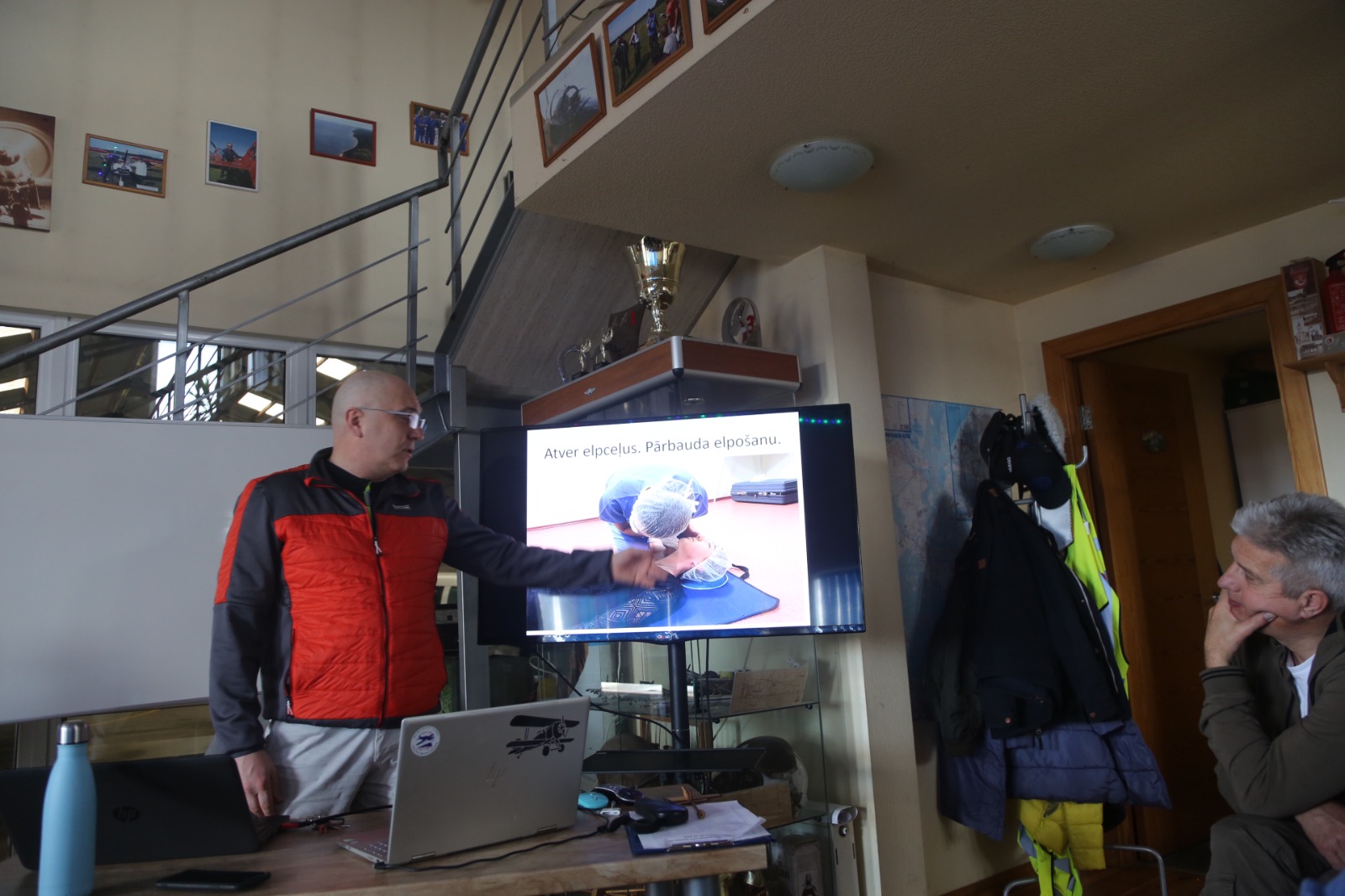Асоциированный профессор МФ ЛУ, врач анестезиолог-реаниматолог Алексей осветил необходимую для всех пилотов тему первой помощи, дал очень подробную информацию о том, как нужно обращаться с различными травмами, ожогами, как обеспечить неподвижность человека в случае несчастного случая, и очень доходчиво объяснил почему это жизненно важно. Из его рассказа мы узнали, об алгоритме первой помощи и о том, что первое, что нужно сделать независимо ни от чего – это вызвать врачей.