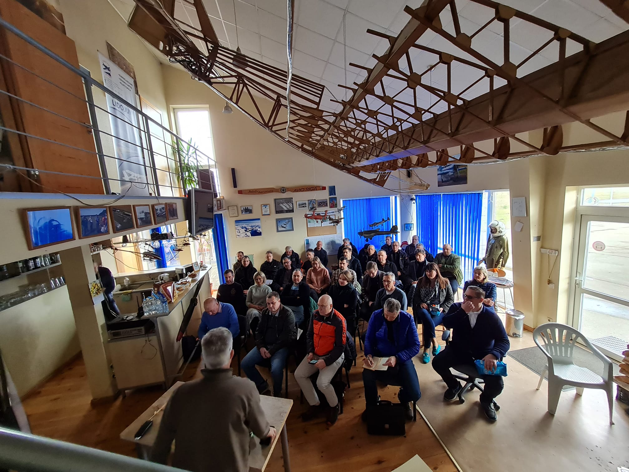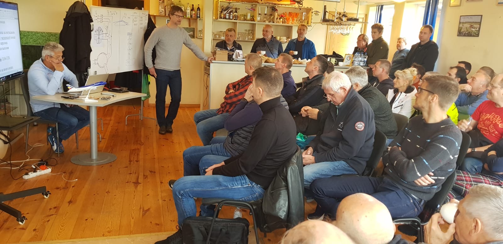 Pilotu skolas “First Fly” pasniedzējs un instruktors Aleksandrs Beļovkins runāja par lidojuma īpatnībām un atšķirībām vasaras un ziemas sezonā, kā arī par uzplūdes leņķi (AOA) un apledojumu. Seminārā piedalījās pat vispieredzējušākie kluba piloti, kuri pirms ziemas sezonas atsvaidzināja zināšanas. Tāpat šī informācija bija ļoti noderīga mūsu skolēniem, jo topošajiem pilotiem šī būs pirmā ziemas sezona un lidojumi ziemas apstākļos.