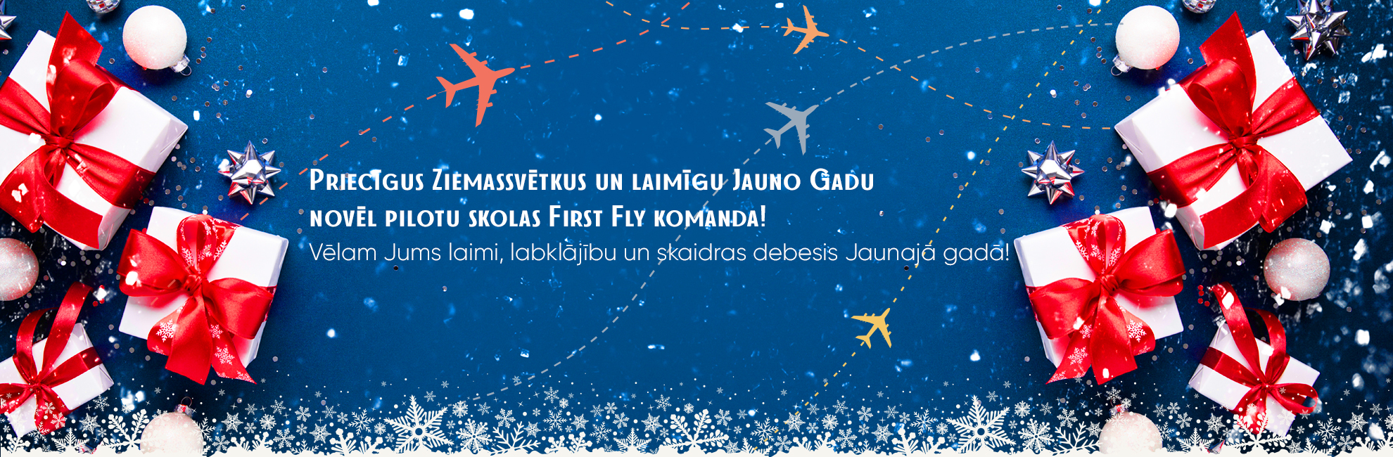 First Fly pilotu skolas komanda novēl visiem laimīgo Jauno gadu un gaišus Ziemassvētkus! Mēs vēlam Jums laimi, labklājību, veiksmi un skaidras debesis virs galvas!